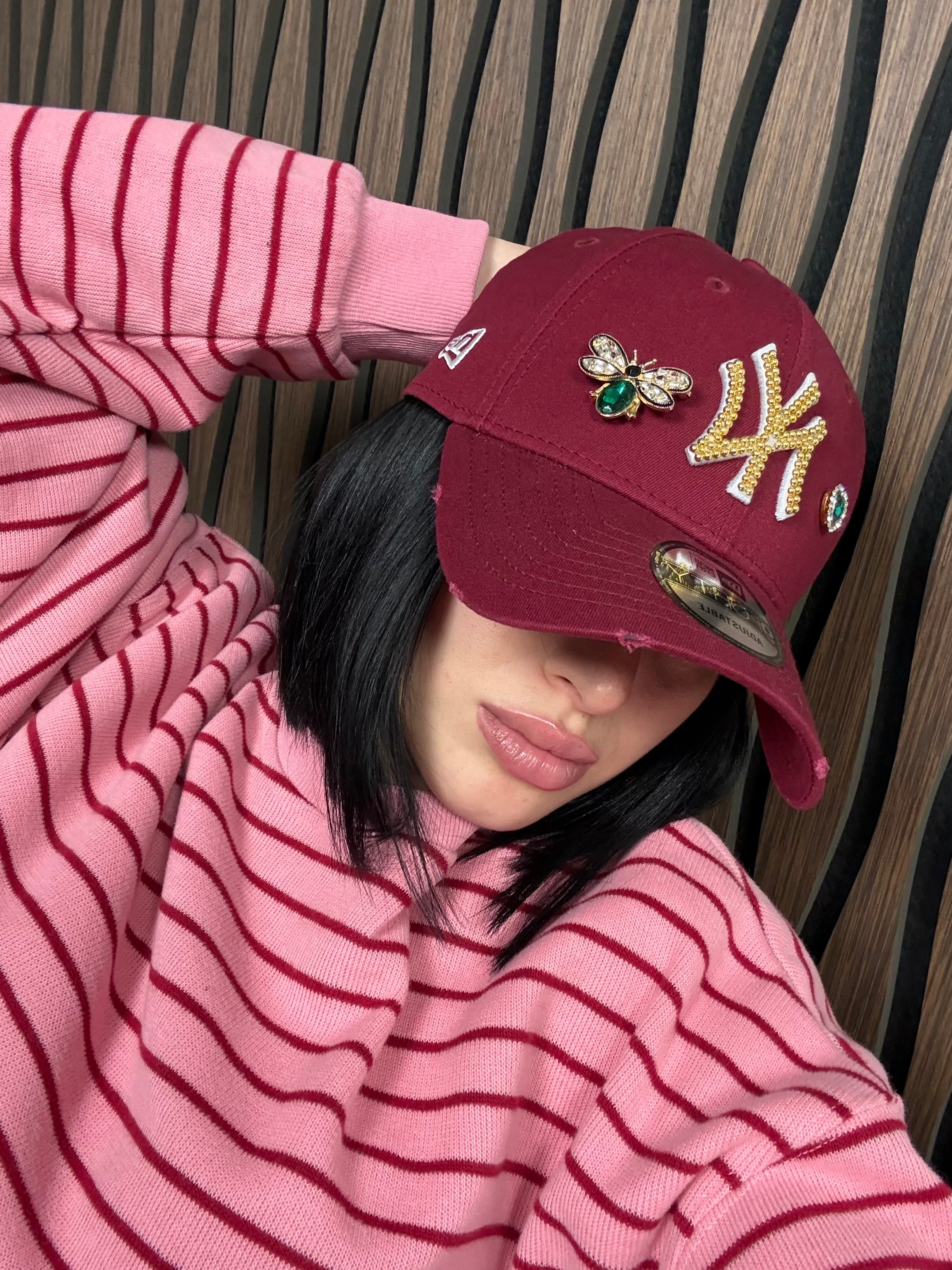 Parte da un autentico cappello New Era di qualità premium e viene completamente personalizzato mediante applicazioni artigianali manuali. Ogni dettaglio è aggiunto a mano, garantendo una qualità superiore e un'attenzione ai dettagli che solo la customizzazione handmade può offrire. Il design include eleganti ciondoli laterali che aggiungono un tocco distintivo e personalizzato al cappello.